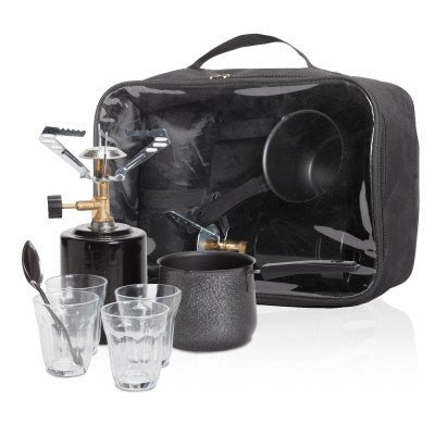 מנהלי רכש, הנה פתרון קומפקטי ומעוצב לחובבי השטח בחברה! ערכת קפה 'ברייק' מגיעה בתיק נשיאה שקוף וייחודי (במידות: 32X12X22 ס"מ) עם ידית נוחה. הערכה מכילה גזיית נקירה בטיחותית (באישור מכון התקנים), 2 מכלים לאחסון, פינג'אן, 4 כוסות זכוכית וכפית (מגיעה ללא מיכל גז). זוהי בחירה פופולרית בקרב חברות הרוכשות מוצרי פרסום בסיטונאות כדי להעניק לעובדים רגעים של שקט מחוץ למשרד. אצלנו באיי פרומו תוכלו להוסיף מיתוג אישי על גבי התיק בקלות, כך שמוצרי הקידום שלכם יצאו לטייל יחד עם הצוות בכל רחבי הארץ באווירה כיפית ומגבשת.