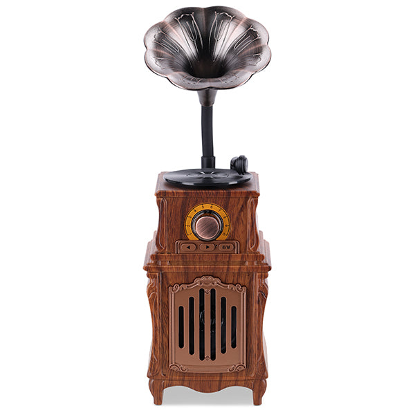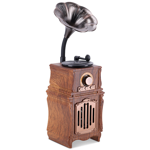 תיאור רמקול Bluetooth רטרו בעיצוב גרמופון קלאסי