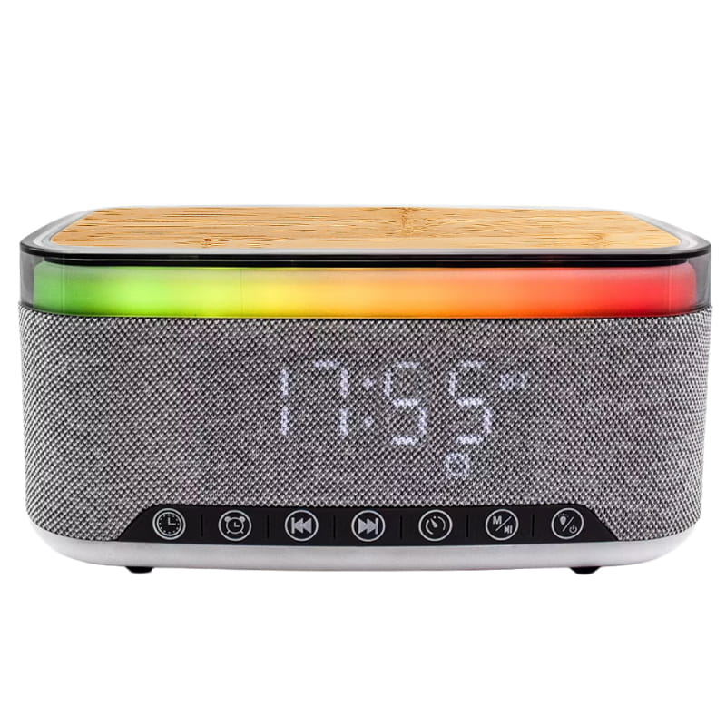 אם אתם מחפשים לשדרג את המתנות במשרד אצלנו באיי פרומו תמצאו גאדגט מולטיפונקציונלי חכם ומרשים המשלב מטען אלחוטי עוצמתי של 15 וואט יחד עם רמקול סטריאו איכותי בעוצמה של שניים כפול 5 וואט המכשיר מעוצב בסגנון מודרני וכולל שעון דיגיטלי מובנה להצגת השעה בצורה ברורה וכן תאורת לד היקפית היוצרת אווירה ייחודית והכל פועל בקלות בחיבור יו אס בי בחירה מצוינת עבור מנהלי משאבי אנוש המחפשים מתנה מרשימה מודרנית ושימושית ביותר לשולחן העבודה או לשידה הביתית של העובדים